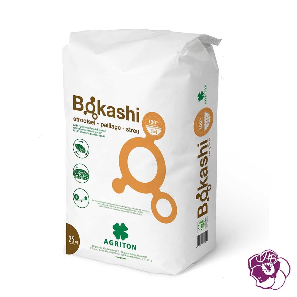 Il est prêt à répandre sur le sol ou à mélanger à la terre pour les plantations. Le Bokashi Paillage est produit par la fermentation d’un mélange de broyat de paille et de pulpe de pomme par les Micro-organismes Efficaces (EM®). Il va apporter des nutriments, coloniser le sol avec les micro-organismes efficaces et aider à convertir la matière organique. Il développera l’immunité de la plante et aidera à la formation de racines robustes.